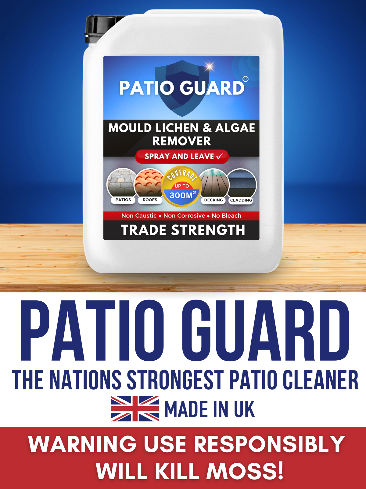 Patio-Guard patio cleaner is non caustic and works using a unique surfactant technology allowing it to be used on all surface types.