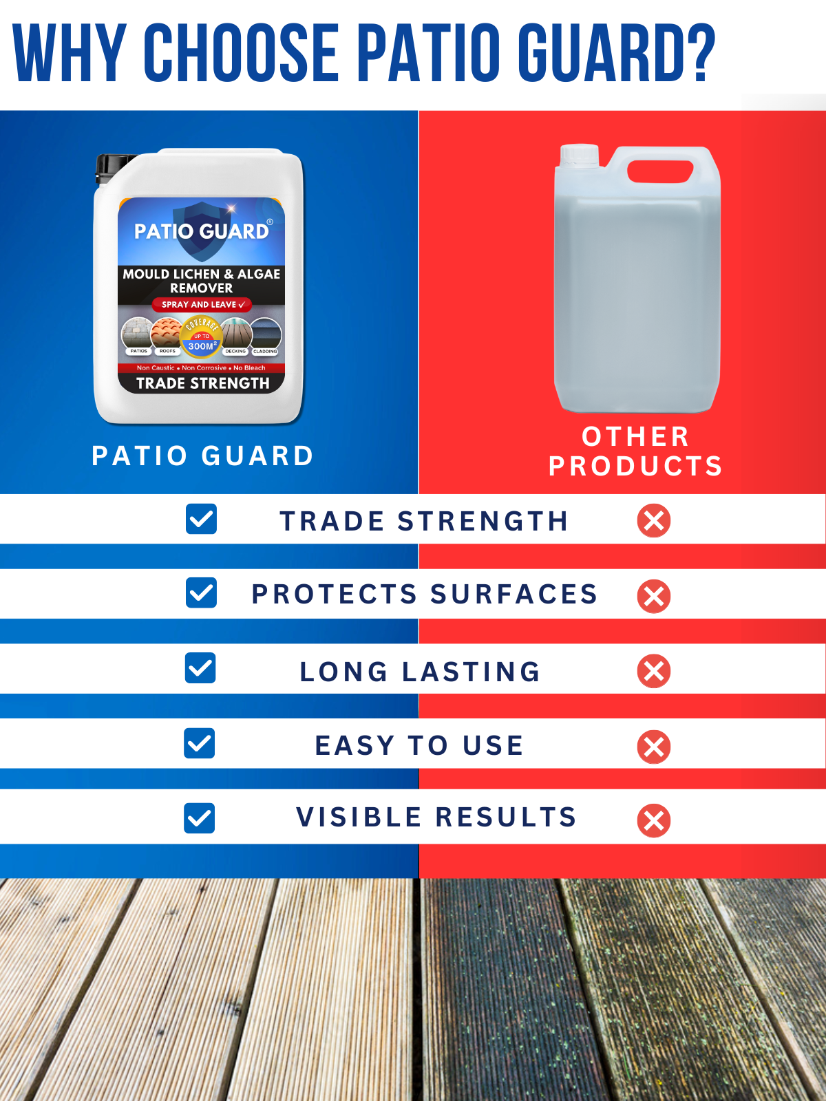 Patio-Guard is provides you with effortless cleaning. with our spray & walk away formula - no scrubbing or pressure washing is required, saving you time and effort.
