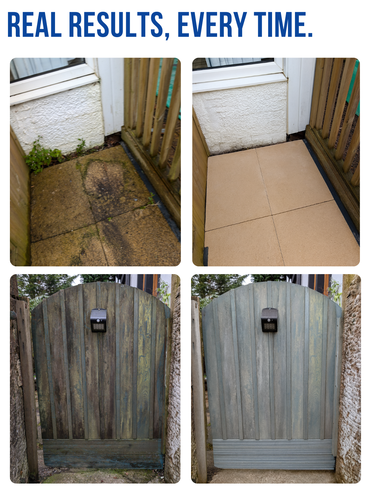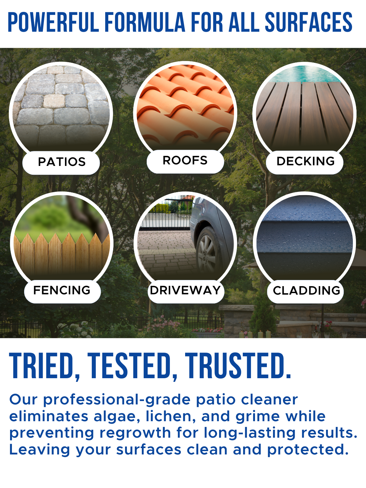 Patio-Guard patio cleaner is the best option for all surfaces as its safe and effective to remove dirt and algae without damaging surfaces and with minimal effort.